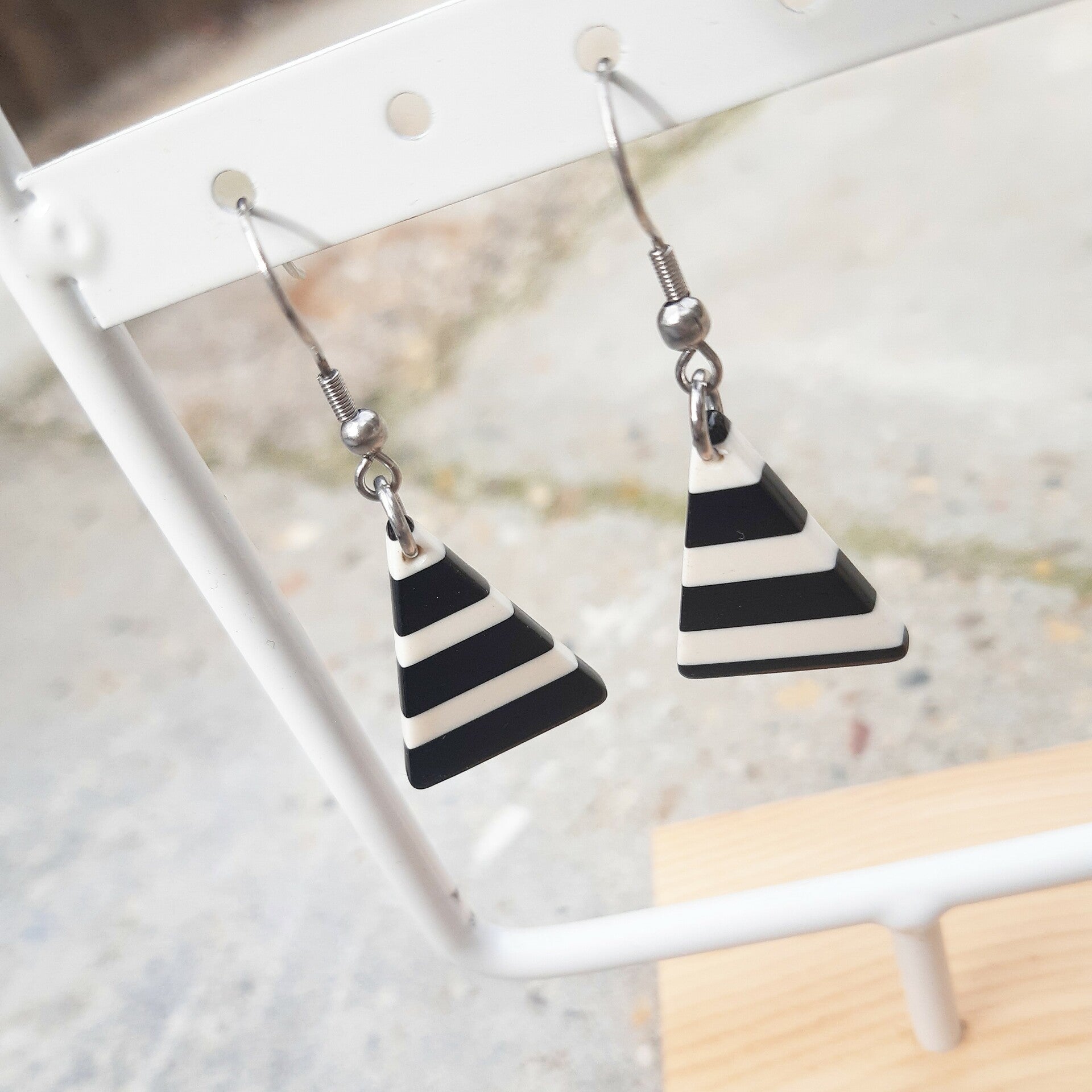 Mooie oorhangers van resin, zwart wit, voorzien van stainless steel oorhaken.