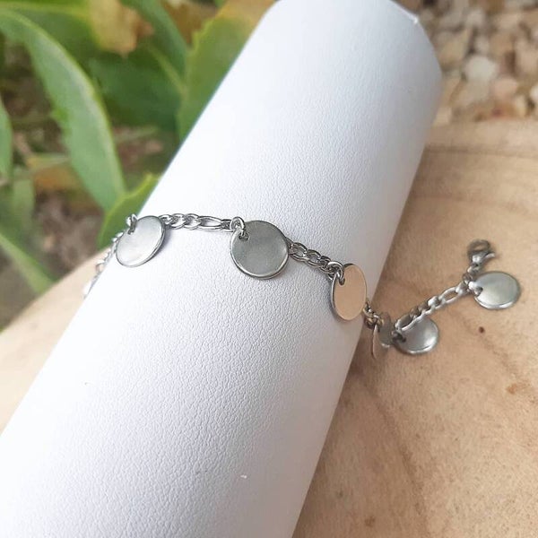 Mooi armbandje van stainless steel voorzien van rvs coinbedels.