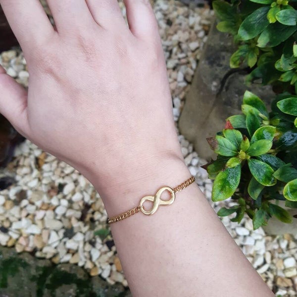 Mooie armbandjes van stainless steel in rvs goud en rvs zilver, met stainless steel infinity connector.