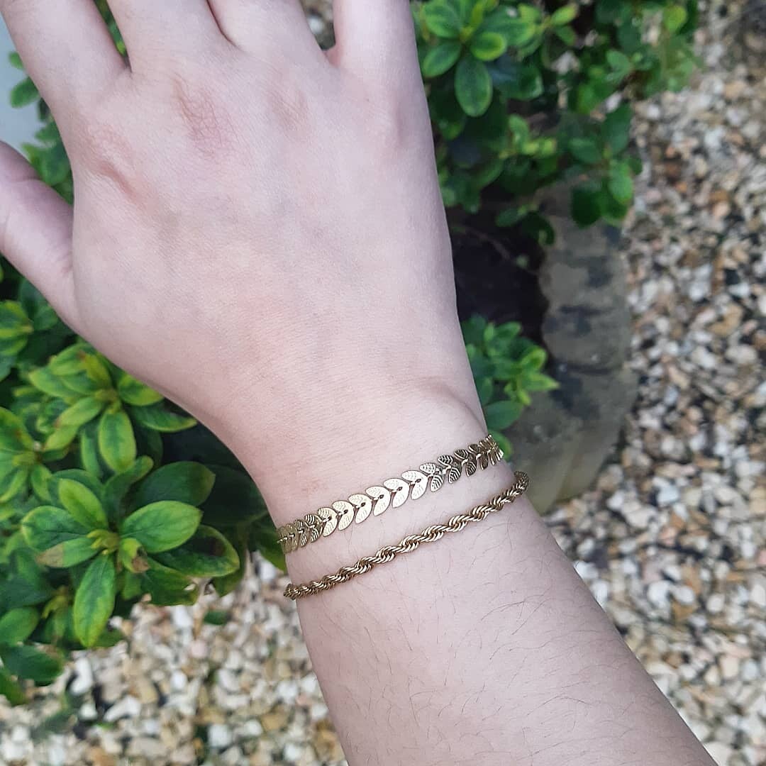 Mooi armbandje van stainless steel met kleine bladeren motief.